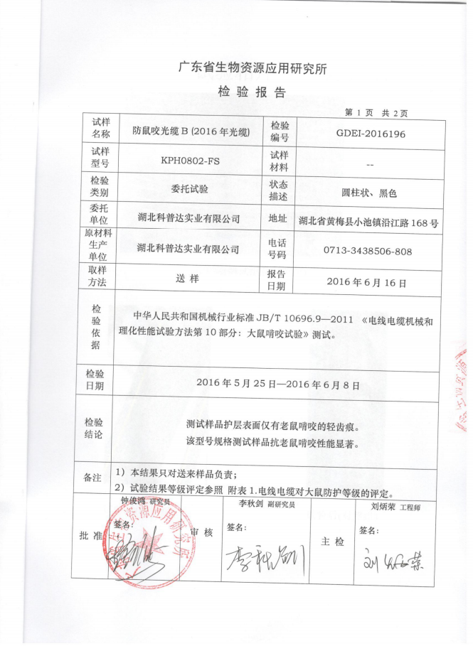 上一篇:科普達防鼠咬光纜檢測報告KPH0802-FS(A樣)